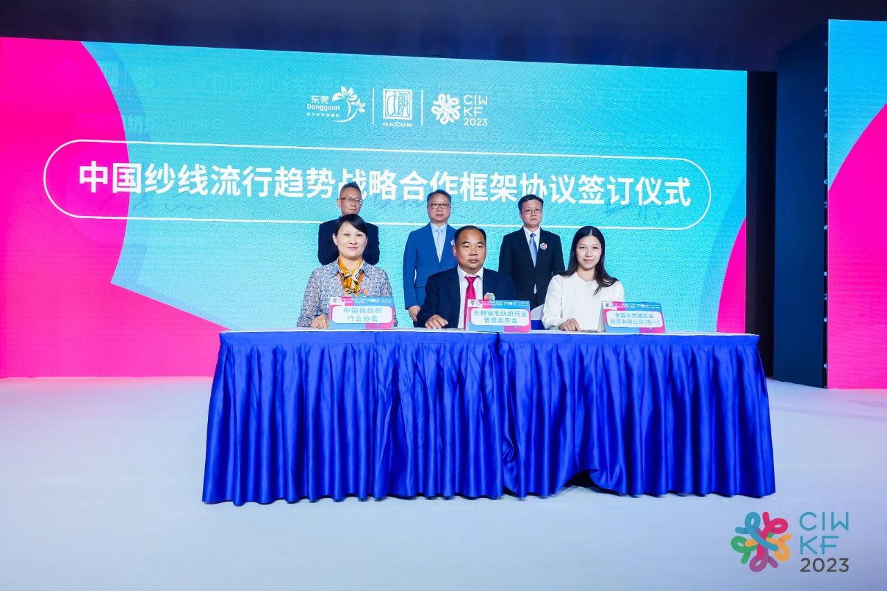 為共同推動中國紗線流行趨勢的研究、推廣和發(fā)展,提升中國紗線產(chǎn)品的知名度和市場影響力,中國棉紡織行業(yè)協(xié)會、大朗鎮(zhèn)毛織管委會以及東莞市貴德實業(yè)投資有限公司三方簽署《中國紗線流行趨勢戰(zhàn)略合作框架協(xié)議》。