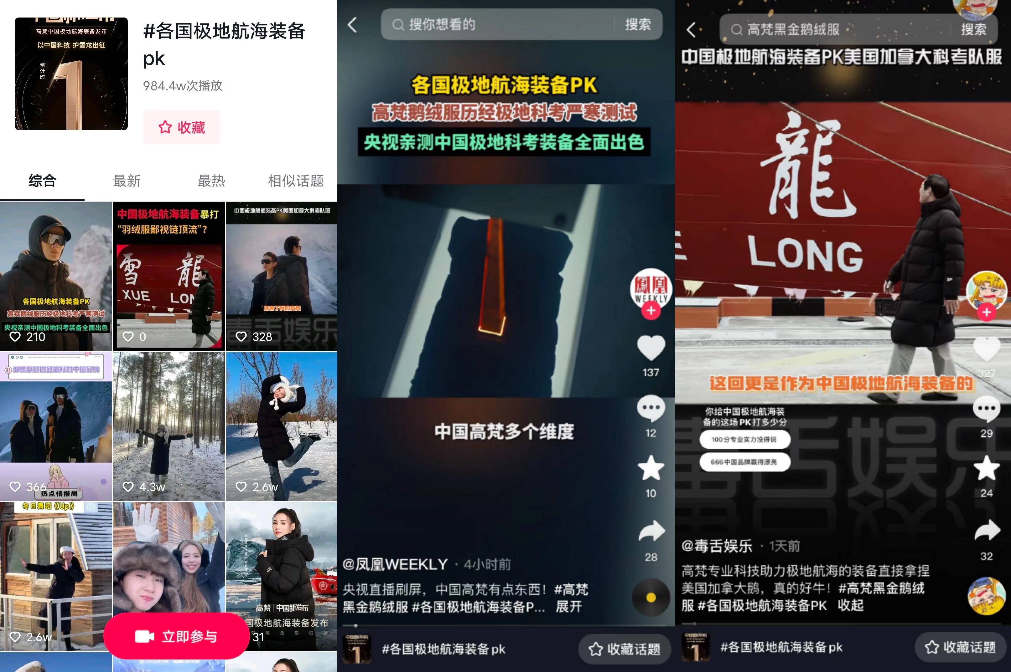 其次,為了進一步發(fā)酵新品直播發(fā)布會,同期發(fā)起#各國極地航海裝備PK 話題,多維度解讀央視網(wǎng)測試片段,不斷強化用戶對品牌與產(chǎn)品的感知。同時還在視頻中發(fā)起互動投票選項,深度激發(fā)消費者參與熱情。