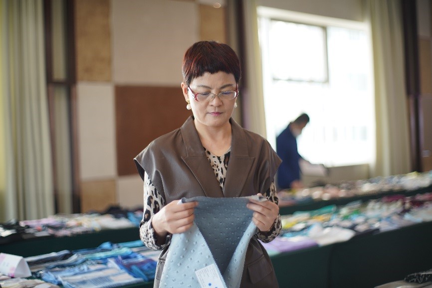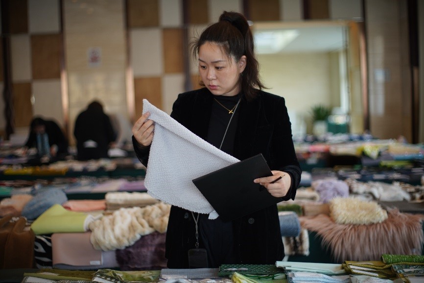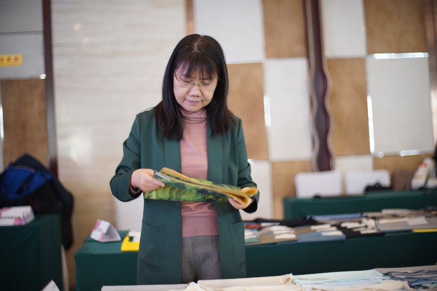 瑰瑋文化藝術(shù)(珠海)有限公司首席設(shè)計師張瑋認為產(chǎn)品整體品質(zhì)較高,其中一款化纖面料做出了仿毛和棉質(zhì)的手感,在性價比方面具有優(yōu)勢。當前消費者更看重產(chǎn)品的功能性、舒適性和環(huán)保性,因此綠色低碳技術(shù)在印染等前道工序的應用也是設(shè)計師關(guān)注的重點。