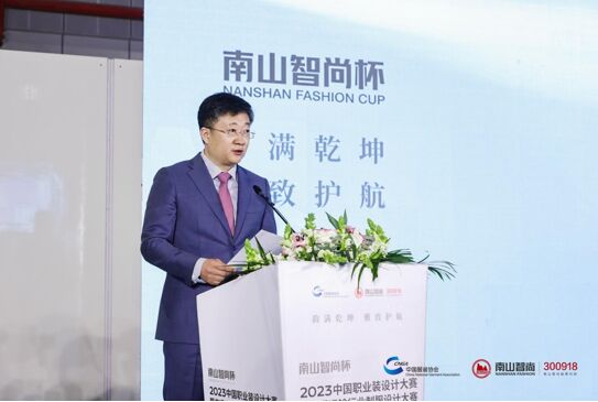 在全場嘉賓、業(yè)界同仁及媒體記者的見證下,國際紡聯(lián)主席、中國紡織工業(yè)聯(lián)合會會長孫瑞哲,中國紡織工業(yè)聯(lián)合會副會長、中國服裝協(xié)會會長陳大鵬,中國紡織工業(yè)聯(lián)合會社會責任辦公室主任、中國紡織信息中心黨委書記閻巖,中國服裝協(xié)會常務(wù)副會長楊金純,中國服裝設(shè)計師協(xié)會兼職副主席、中國時裝“金頂獎”獲得者武學(xué)凱,新南山國際董事長宋英豪,山東南山智尚科技股份有限公司董事長趙亮,山東南山智尚科技股份有限公司精紡公司總經(jīng)理劉剛中,山東南山智尚科技股份有限公司服飾公司總經(jīng)理王劍,南山集團長三角上??偛靠偛弥苡啦?,山東省紡織服裝協(xié)會執(zhí)行會長劉建國,共同為“南山智尚杯” 2023中國職業(yè)裝設(shè)計大賽暨交通運輸行業(yè)制服設(shè)計大賽啟幕,釋放職業(yè)裝產(chǎn)業(yè)新活力及大賽新能量。