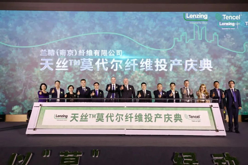 2023年蘭精南京工廠第一包天絲™莫代爾纖維成功投產(chǎn),標(biāo)志著蘭精公司在中國(guó)市場(chǎng)擁有了天絲™莫代爾纖維生產(chǎn)線。作為客戶活動(dòng)的一部分,4月18日,以“相濡以‘莫’,綠動(dòng)未來(lái)”為主題的蘭精(南京)纖維有限公司天絲™莫代爾纖維投產(chǎn)慶典在南京舉行。奧地利駐滬總領(lǐng)事館總領(lǐng)事Helmut Rakowltsch,南京市六合區(qū)委常委、副區(qū)長(zhǎng)呂明亮,中國(guó)針織工業(yè)協(xié)會(huì)會(huì)長(zhǎng)林云峰,奧地利駐滬總領(lǐng)事館商務(wù)處副領(lǐng)事Alexandra Runge,蘭精集團(tuán)全球紡織品業(yè)務(wù)副總裁Florian Heubrandner等領(lǐng)導(dǎo)嘉賓,南京市各級(jí)政府及相關(guān)部門負(fù)責(zé)人,以及紗線廠、面料廠、品牌方等產(chǎn)業(yè)鏈代表出席了此次慶典。