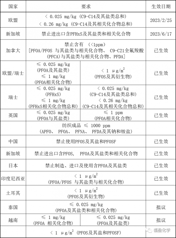 PFAS各國限制摘要