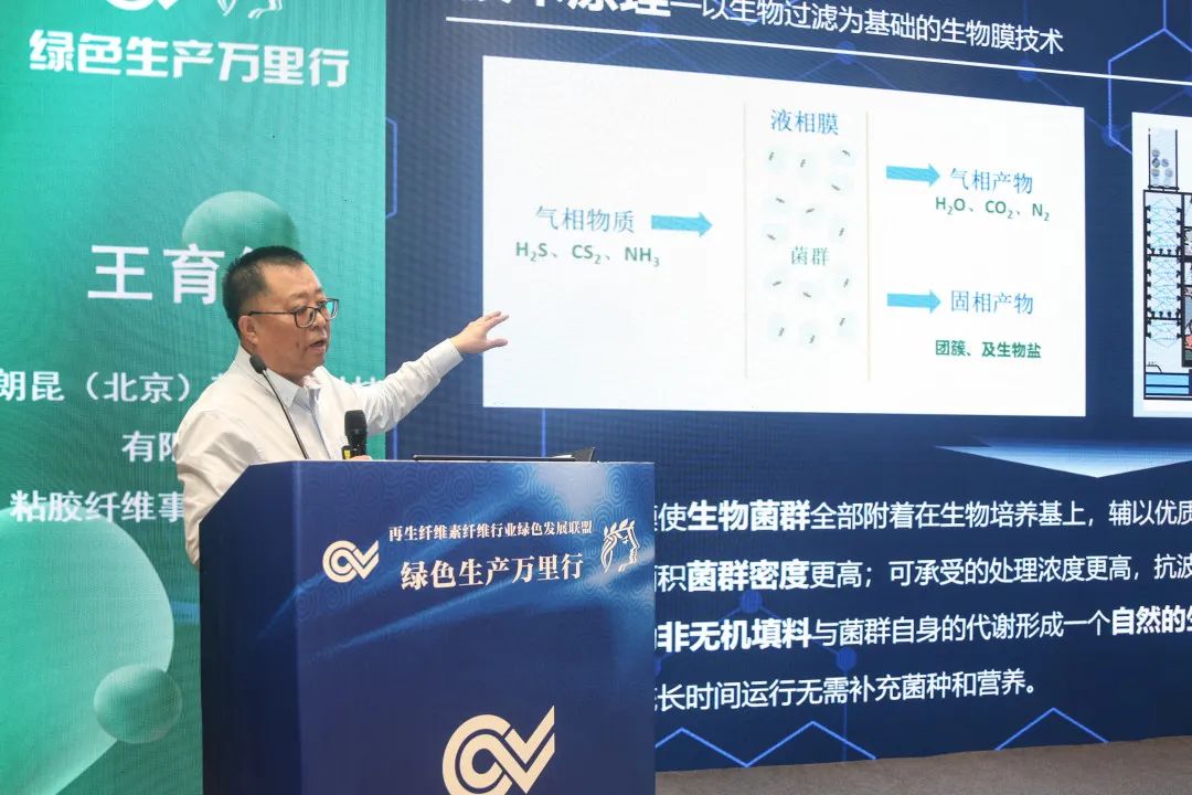 朗昆(北京)新環(huán)??萍加邢薰菊衬z纖維事業(yè)部總經(jīng)理王育紅分享了朗昆生物法技術(shù)在粘膠纖維行業(yè)廢氣治理上的應(yīng)用案例。他表示,朗昆生物法技術(shù)有三大優(yōu)勢(shì),一是可同時(shí)處理含有硫化氫和二硫化碳的混合氣體;二是可解決粘膠纖維行業(yè)低濃度生產(chǎn)廢氣的達(dá)標(biāo)排放問(wèn)題;三是處理較低濃度的生產(chǎn)廢氣時(shí),可實(shí)現(xiàn)較高的環(huán)保治理水平。目前,該技術(shù)在宜賓海斯特、新鄉(xiāng)化纖、中泰紡織等企業(yè)均有應(yīng)用。