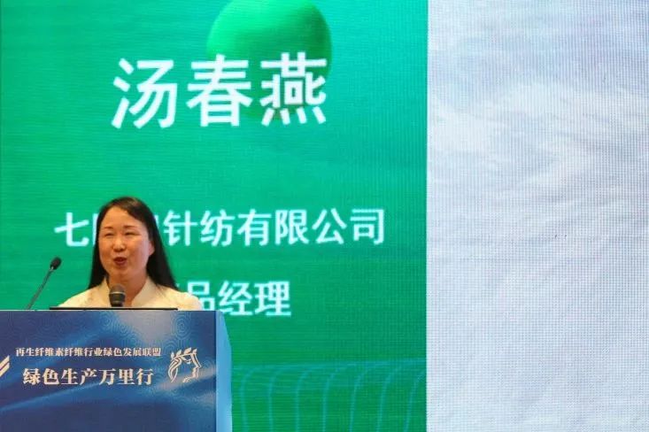 七匹狼針紡有限公司商品經(jīng)理湯春燕分享了居家針織領(lǐng)域綠色可持續(xù)理念及產(chǎn)品開(kāi)發(fā)創(chuàng)新思路等。七匹狼持續(xù)推出的綠色環(huán)保系列產(chǎn)品,都取材于經(jīng)認(rèn)證或受控的可再生木源,如其紙紗是由FSC認(rèn)證的紙張經(jīng)過(guò)多重工藝制作而成,進(jìn)而將紙紗織成高品質(zhì)的紙纖維襪,產(chǎn)品既可為社會(huì)創(chuàng)造效益又對(duì)環(huán)境友好。此外,她還結(jié)合國(guó)潮文化元素,介紹了用天然彩棉、天絲、竹漿纖維、莫代爾纖維等新產(chǎn)品研發(fā)實(shí)踐。