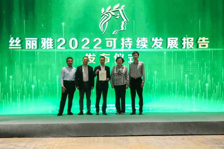 圖 | 中國(guó)化纖協(xié)會(huì)原副會(huì)長(zhǎng)賀燕麗,工信部消費(fèi)品工業(yè)司紡織處四級(jí)調(diào)研員吳桐,中國(guó)紡聯(lián)社會(huì)責(zé)任辦公室副主任胡柯華,中國(guó)化纖協(xié)會(huì)科技部主任、CV聯(lián)盟秘書長(zhǎng)張子昕,絲麗雅集團(tuán)副總經(jīng)理宋偉共同見(jiàn)證了絲麗雅《2022可持續(xù)發(fā)展報(bào)告》的發(fā)布。