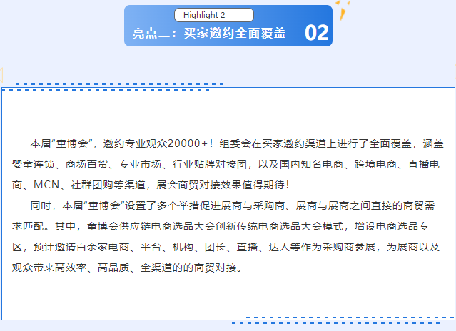 本屆“童博會(huì)”總結(jié)歷屆成功經(jīng)驗(yàn),結(jié)合市場最新趨勢動(dòng)向,攜三大亮點(diǎn)全新升級來襲,充分發(fā)揮行業(yè)權(quán)威展會(huì)平臺職能與優(yōu)勢,立足全新潮代,協(xié)同產(chǎn)業(yè)上下共議“童”領(lǐng)未來新格局。