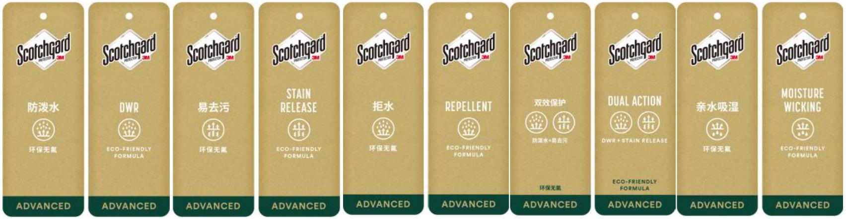 目前,3M思高潔針對不同的功能方案推出了以下產(chǎn)品——無氟防水功能:PM-3705,PM-2688;無氟雙效功能(防水+易去污):PM-3888;無氟易去污功能:PM-2740;親水吸濕易去污功能:PM-226;皮革保護(hù)功能:PM-3869,PM-3870。