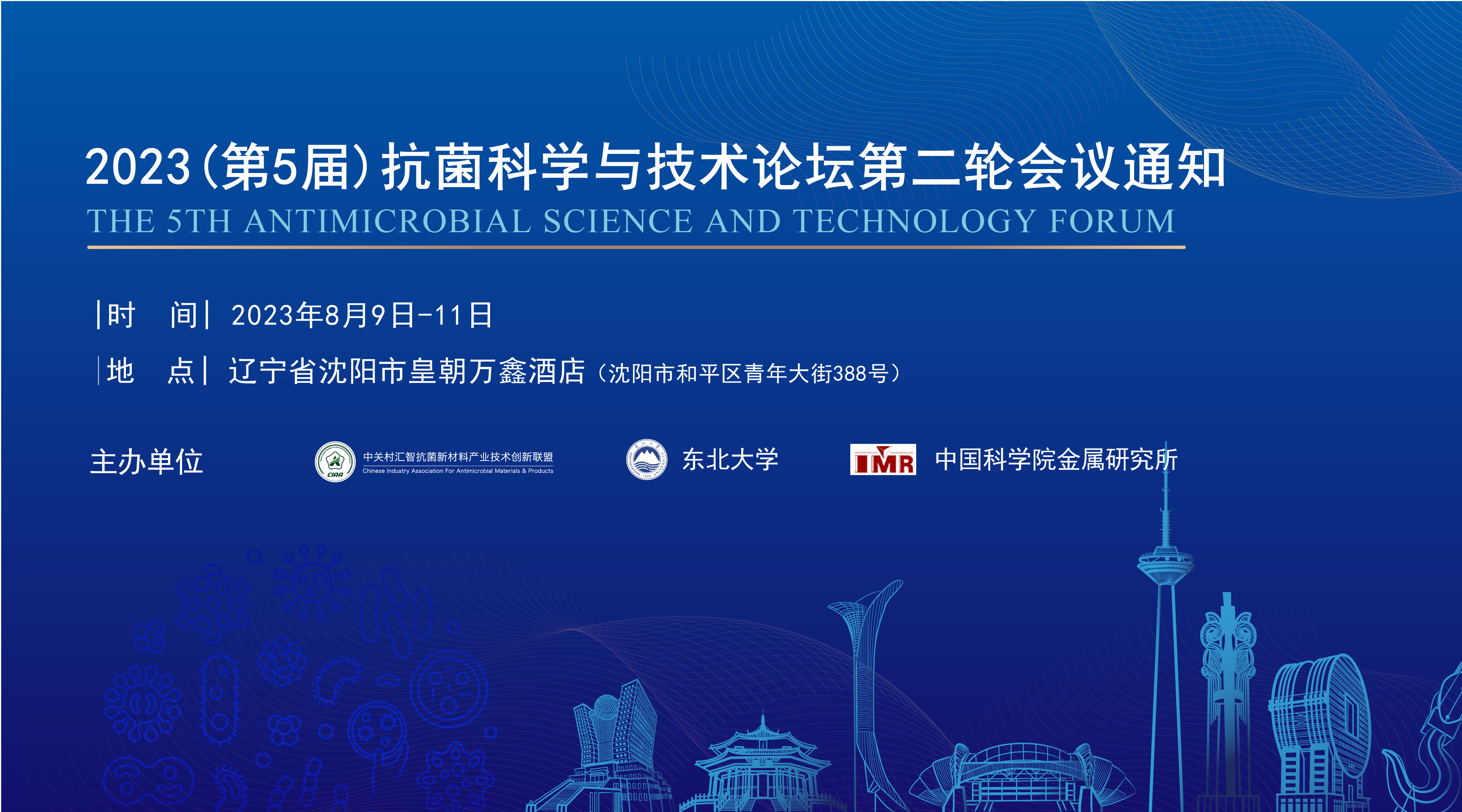 2023(第5屆)抗菌科學(xué)與技術(shù)論壇由中關(guān)村匯智抗菌新材料產(chǎn)業(yè)技術(shù)創(chuàng)新聯(lián)盟、東北大學(xué)和中國科學(xué)院金屬研究所共同主辦,將于2023年8月9日-11日在沈陽市舉行。