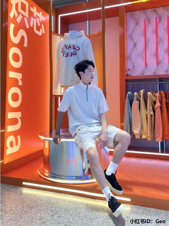 菌絲、苔蘚、綠色植物與科技明亮色系的交映融合,形成自然炫酷的獨(dú)特風(fēng)格氣質(zhì),吸引眾多KOL打卡拍照,在社交平臺(tái)等潮流聚集地分享各自的潮流態(tài)度。