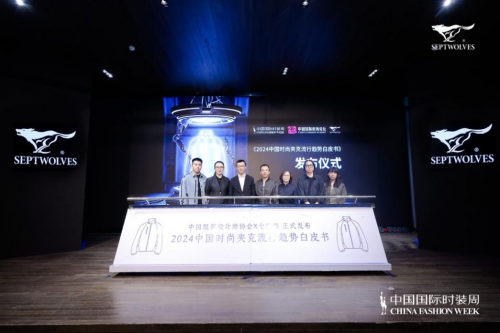 七匹狼副總裁余如(左四)表示,《2024中國(guó)時(shí)尚夾克流行趨勢(shì)白皮書》的發(fā)布將開啟中國(guó)夾克時(shí)尚趨勢(shì)的新篇章。