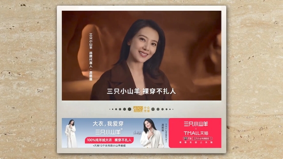 主流消費(fèi)人群在服裝市場(chǎng)起到了不可或缺的推動(dòng)作用,他們不僅對(duì)品質(zhì)有著超高的要求,而且在審美和品牌選擇上也相當(dāng)挑剔。面對(duì)這樣的高標(biāo)準(zhǔn),三只小山羊通過與高圓圓的合作,成功傳達(dá)了其高品質(zhì)和高級(jí)美的品牌理念。為了與主流消費(fèi)人群深度互動(dòng),三只小山羊聯(lián)合分眾,讓三只小山羊產(chǎn)品及品牌理念觸達(dá)更多主流消費(fèi)者。