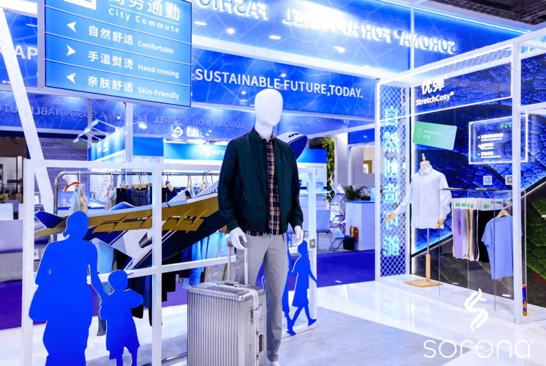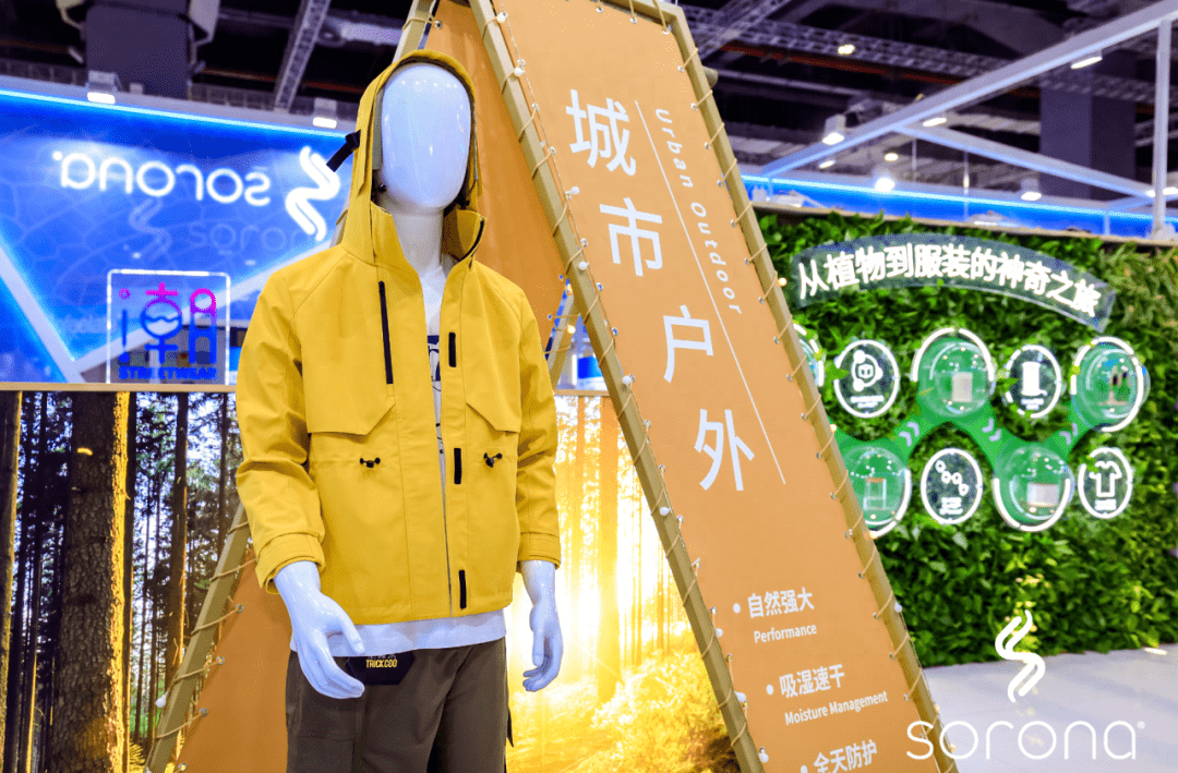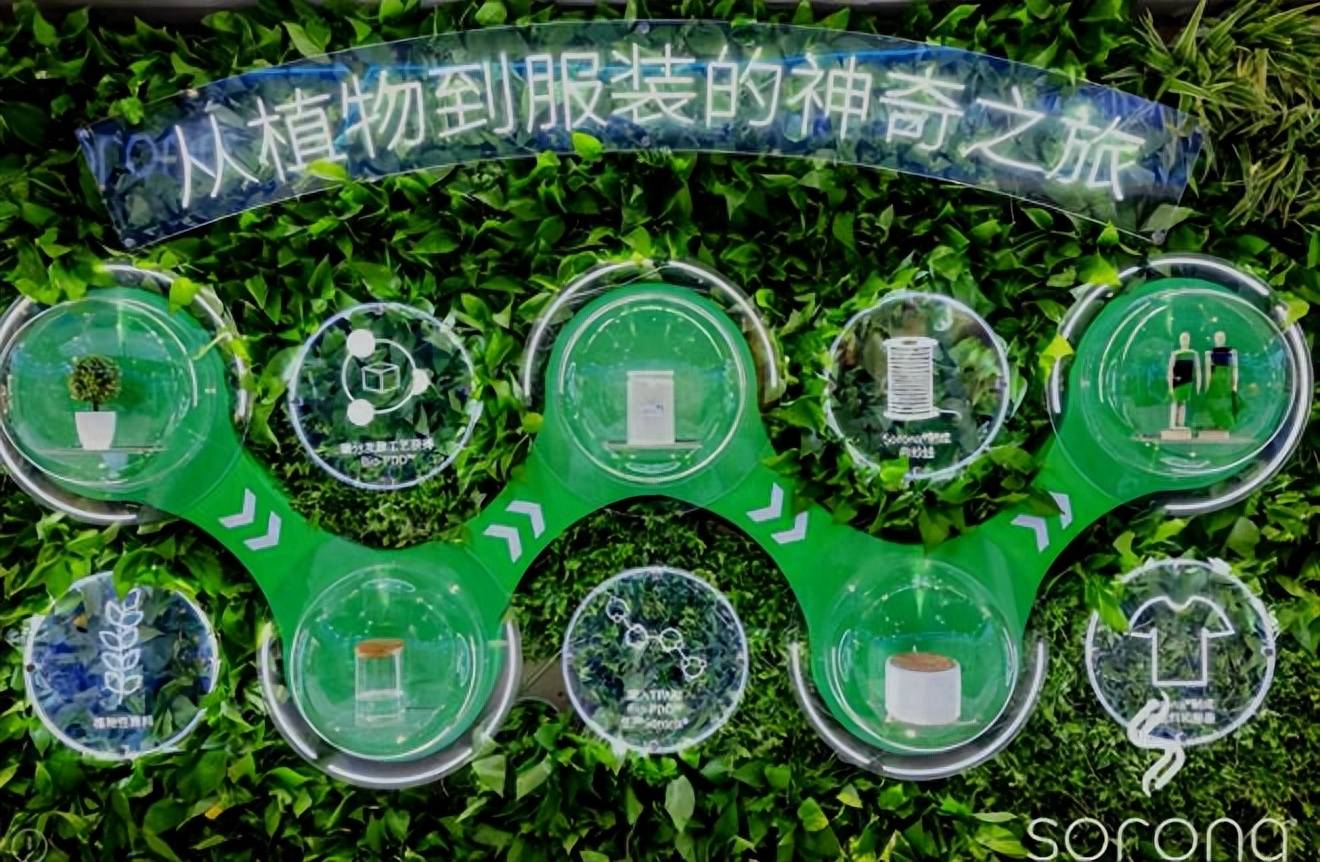 來到SORONA®展位,C位的植物墻記錄了SORONA®從誕生到服裝的生命周期歷程。SORONA®生物基材料利用可重復(fù)生長的植物性資源,憑借自然界所蘊(yùn)藏的強(qiáng)大力量,有效降低了生產(chǎn)過程中對石油資源的消耗與碳排放。作為植物來源生物基合成纖維技術(shù)的先驅(qū),SORONA®打破傳統(tǒng)纖維產(chǎn)業(yè)重度依賴石油和石化產(chǎn)品的局面,從此不再桎梏于傳統(tǒng)時(shí)尚工業(yè)的高耗能。