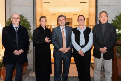 圖說:(從左至右)法國駐上??傤I(lǐng)事館經(jīng)濟(jì)參贊穆西石先生,智奧會展大中華區(qū)總裁Inès Ginon女士,法國駐上??傤I(lǐng)事M. Joan Valadou 王度先生、Première Vision董事會主席Florence Rousson女士、之禾卡紛集團(tuán)創(chuàng)始人葉壽增先生