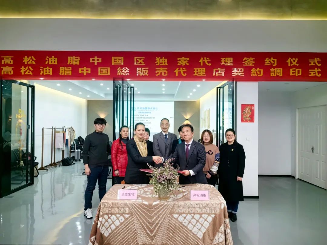 本次高松油脂和美勝生物正式真誠達(dá)成進(jìn)一步戰(zhàn)略合作,美勝生物成為高松油脂在中國的獨(dú)家授權(quán)合作伙伴,全面代理高松油脂纖維用全系列產(chǎn)品。雙方將進(jìn)行優(yōu)勢互補(bǔ), 高松油脂在纖維用高分子化合物的領(lǐng)先技術(shù)和產(chǎn)品優(yōu)勢將和美勝生物完善的營銷渠道與專業(yè)的增值服務(wù)能力相結(jié)合,雙方將努力為中國紡織市場客戶提供更加完善的產(chǎn)品、優(yōu)質(zhì)的服務(wù)和高效的支持。