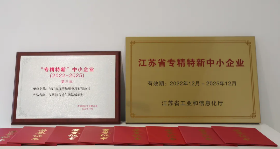 近年來(lái),漢塔紡織獲評(píng)高新技術(shù)企業(yè)、江蘇省“專精特新”企業(yè)、江蘇省瞪羚企業(yè)、目前在建設(shè)完工整理行業(yè)第一個(gè)5G智慧工廠。發(fā)明專利已超過(guò)40余項(xiàng),企業(yè)通過(guò)專利對(duì)公司、客戶、整個(gè)行業(yè)進(jìn)行保護(hù),同時(shí)牽頭積極參與并制定了重要團(tuán)體和行業(yè)標(biāo)準(zhǔn)。