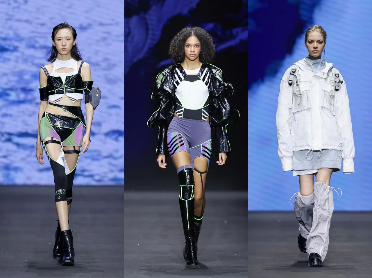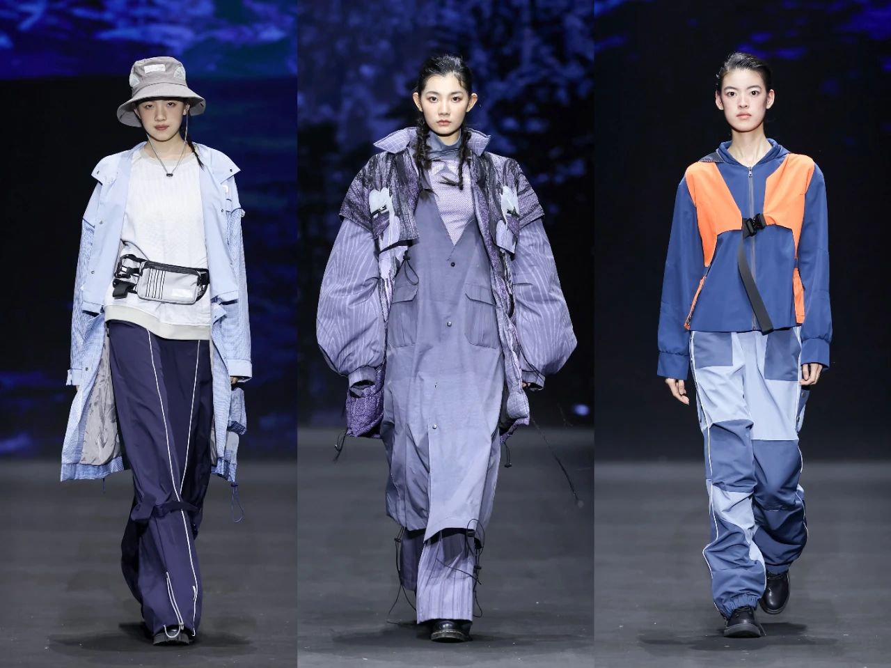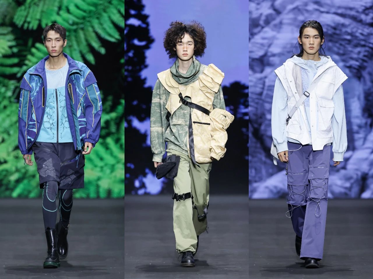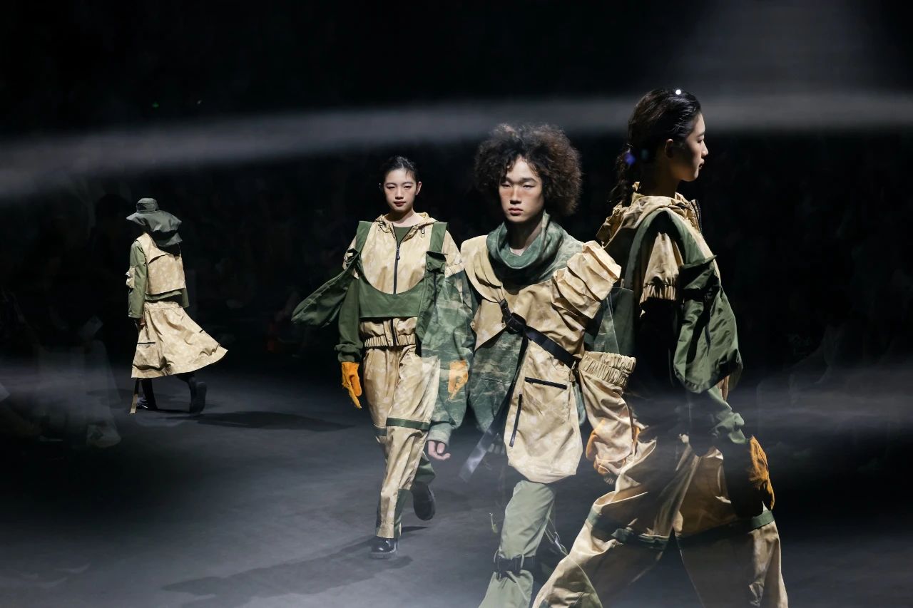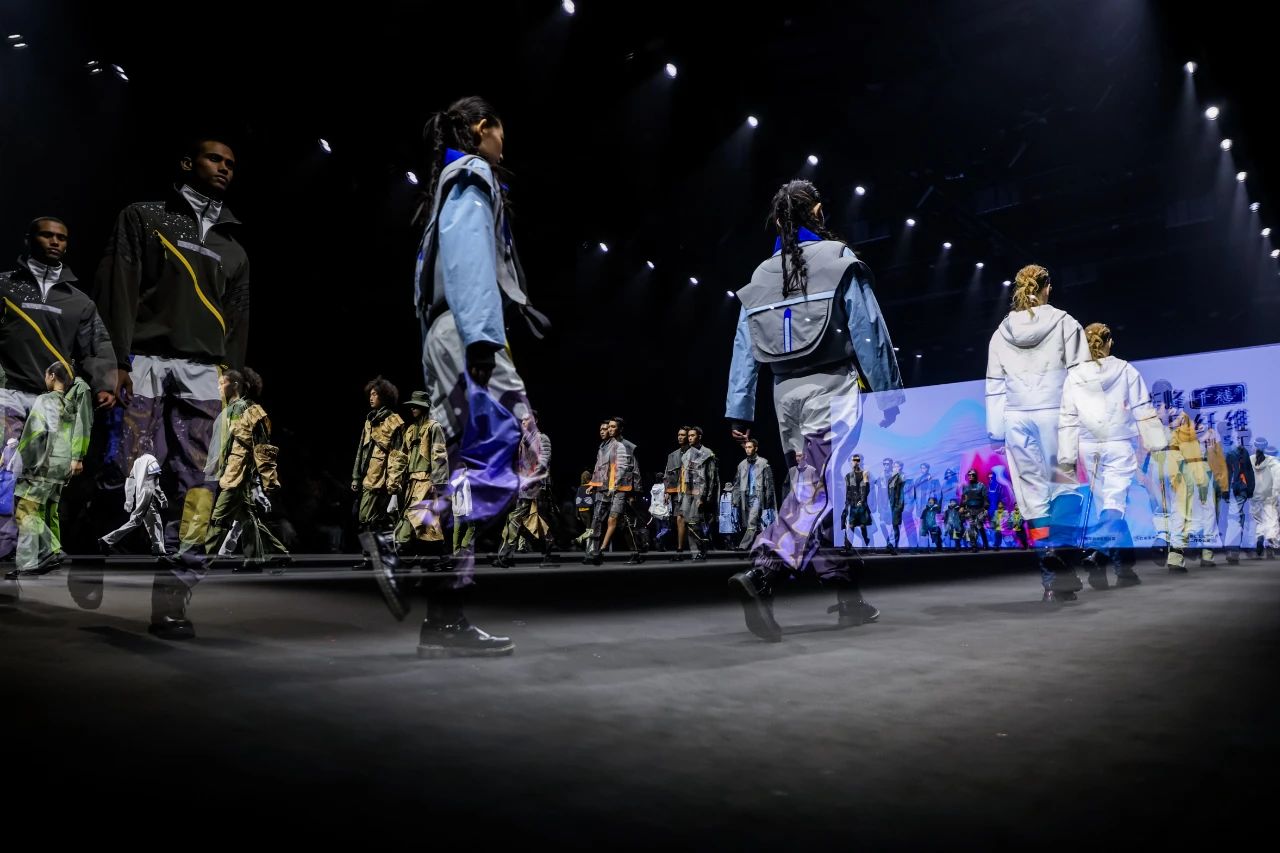 首批入庫(kù)品牌發(fā)布之后,一場(chǎng)定位于“未來(lái)運(yùn)動(dòng)美學(xué)全景演繹”的泛運(yùn)動(dòng)超級(jí)大秀精彩上演。這場(chǎng)大秀匯聚了在首屆“千禧”杯服裝設(shè)計(jì)大賽中涌現(xiàn)出的60套優(yōu)秀設(shè)計(jì)作品。中國(guó)青年設(shè)計(jì)力量以多元化的運(yùn)動(dòng)項(xiàng)目為載體,融合攀巖、滑雪、徒步、露營(yíng)、潛水、劍術(shù)等多種戶外體驗(yàn),通過(guò)前沿材料的創(chuàng)新應(yīng)用,探索運(yùn)動(dòng)時(shí)尚的全新邊界,展示纖維材料在功能性、舒適性和創(chuàng)意表達(dá)上的無(wú)限可能。大秀從科技感和極限運(yùn)動(dòng)為主調(diào)的戶外探險(xiǎn)拉開序幕,到動(dòng)感與時(shí)尚的城市運(yùn)動(dòng)系列,再到輕松舒適的山野漫步系列,最后以充滿童趣的溫馨畫面結(jié)尾,也象征著未來(lái)的希望。