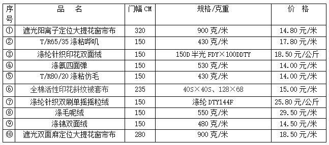 中國輕紡城暢銷面料排行榜