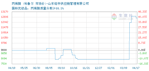 12月11日科魯爾關(guān)于丙烯腈的報(bào)價(jià)為8000元/噸。丙烯腈的規(guī)格:國(guó)標(biāo)優(yōu)級(jí)品;丙烯腈質(zhì)量分?jǐn)?shù)≥99.5%。該報(bào)價(jià)有效期為1天。報(bào)價(jià)提供方:山東銘宇供應(yīng)鏈管理有限公司。