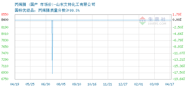 12月11日國(guó)產(chǎn)丙烯腈為8400元