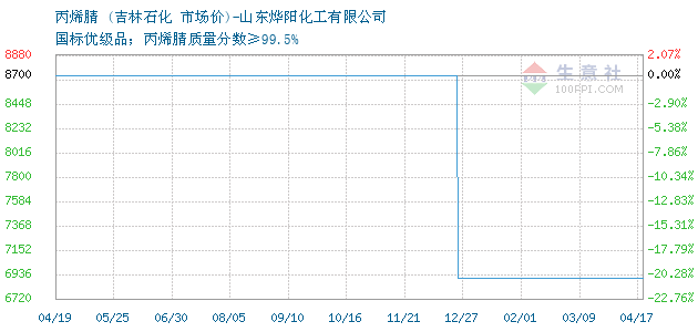 12月11日吉林石化丙烯腈為8700元