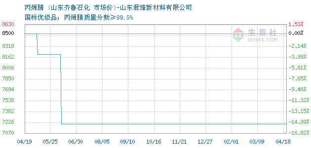 12月11日山東齊魯石化丙烯腈為7200元
