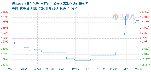12月11日嘉禾化纖錦綸DTY為13400元