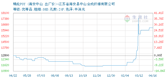 12月11日江蘇省海安縣中山合成纖維有限公司關(guān)于錦綸POY的報價為11600元/噸。錦綸POY的規(guī)格:等級:優(yōu)等品;粗細(xì):86D;孔數(shù):24F;色澤:半消光。該報價有效期為3天。報價提供方:江蘇省海安縣中山合成纖維有限公司。
