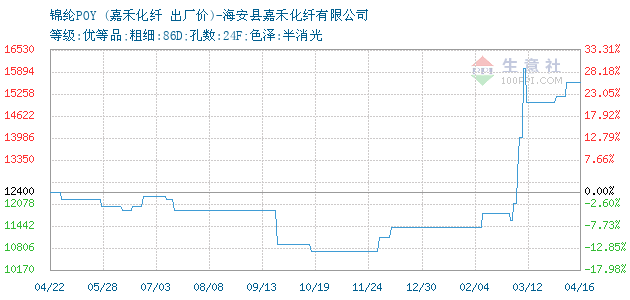 12月11日海安縣嘉禾化纖有限公司關(guān)于錦綸POY的報(bào)價(jià)為11400元/噸。錦綸POY的規(guī)格:等級(jí):優(yōu)等品;粗細(xì):86D;孔數(shù):24F;色澤:半消光。該報(bào)價(jià)有效期為3天。報(bào)價(jià)提供方:海安縣嘉禾化纖有限公司。