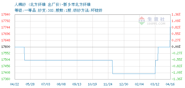 12月11日新鄉(xiāng)市北方纖維有限公司關(guān)于人棉紗的報價為17400元/噸。人棉紗的規(guī)格:等級:一等品;紗支:30S;股數(shù):1股;紡紗方法:環(huán)錠紡。該報價有效期為3天。報價提供方:新鄉(xiāng)市北方纖維。