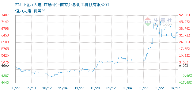 12月11日恒力大連關(guān)于PTA的報價為4680元/噸。PTA的規(guī)格:恒力大連 優(yōu)等品 。該報價有效期為1天。報價提供方:南京外恩化工科技有限公司。