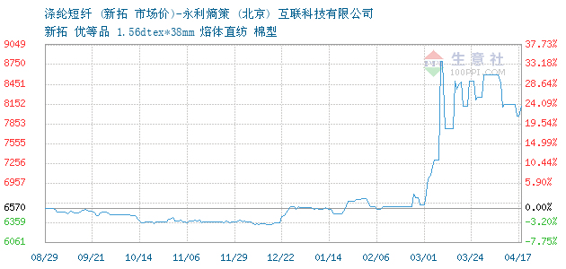 12月11日新拓關于滌綸短纖的報價為6310元/噸。滌綸短纖的規(guī)格:新拓 優(yōu)等品 1.56dtex*38mm 熔體直紡 棉型 。該報價有效期為1天。報價提供方:永利熵策 (北京) 互聯(lián)科技有限公司。