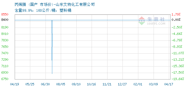12月13日國產(chǎn)關(guān)于丙烯腈的報(bào)價(jià)為8400元/噸。丙烯腈的規(guī)格:含量99.9%,160公斤/桶,塑料桶。該報(bào)價(jià)有效期為7天。報(bào)價(jià)提供方:山東艾特化工有限公司。