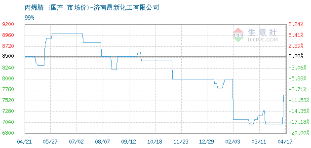 12月15日國產(chǎn)關(guān)于丙烯腈的報(bào)價(jià)為8000元/噸。丙烯腈的規(guī)格:99%。該報(bào)價(jià)有效期為3天。報(bào)價(jià)提供方:濟(jì)南昂新化工有限公司。