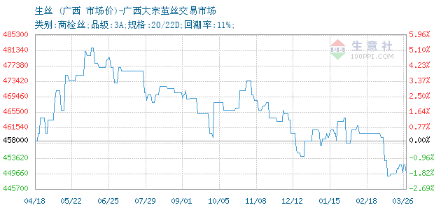 12月15日廣西大宗繭絲交易市場(chǎng)關(guān)于生絲的報(bào)價(jià)為455500元/噸。生絲的規(guī)格:類(lèi)別:商檢絲;品級(jí):3A;規(guī)格:20/22D;回潮率:11%;。該報(bào)價(jià)有效期為3天。報(bào)價(jià)提供方:廣西大宗繭絲交易市場(chǎng)。