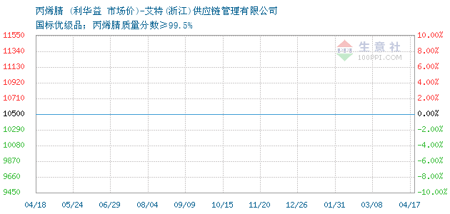 12月16日利華益關(guān)于丙烯腈的報(bào)價(jià)為10500元/噸。丙烯腈的規(guī)格:國標(biāo)優(yōu)級品;丙烯腈質(zhì)量分?jǐn)?shù)≥99.5%。該報(bào)價(jià)有效期為1天。報(bào)價(jià)提供方:艾特(浙江)供應(yīng)鏈管理有限公司。