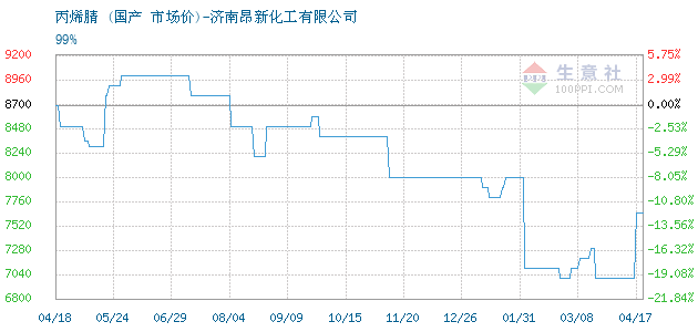 12月16日國產(chǎn)關于丙烯腈的報價為8000元/噸。丙烯腈的規(guī)格:99%。該報價有效期為3天。報價提供方:濟南昂新化工有限公司。