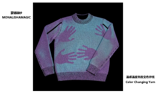 溫感變色紗線,也被稱為熱變紗線、熱敏變色紗線等,它不僅僅是一種新奇的材料。從情緒價值來看,它能為消費者帶來獨特的視覺體驗和驚喜感。想象一下,一件衣服隨著溫度變化而呈現(xiàn)出不同的色彩,這無疑會讓穿著者成為焦點,滿足人們對于個性化和時尚的追求。