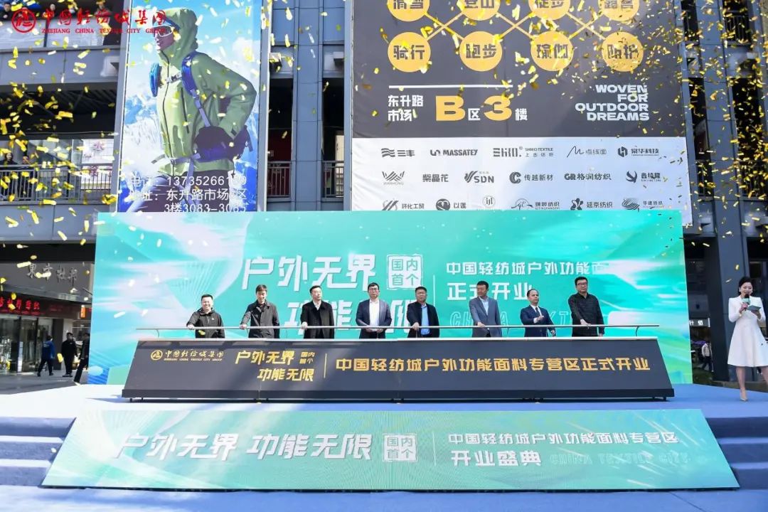 隨著金沙傾瀉的璀璨時刻,3月18日,中國輕紡城東升路市場迎來里程碑式新起點——中國輕紡城戶外功能面料專營區(qū)正式開業(yè),以“戶外無界,功能無限”為主題,標志著戶外功能面料產業(yè)邁向新征程。這是中國輕紡城市場轉型升級的又一次探索,也是東升路市場生態(tài)深度布局的又一次突破?,F(xiàn)場,紡織行業(yè)專家領導、品牌服裝企業(yè)代表、功能面料標桿企業(yè)代表及紡織領域網紅達人齊聚一堂,共同見證開業(yè)這一重要時刻,共商戶外功能面料未來發(fā)展新路徑。