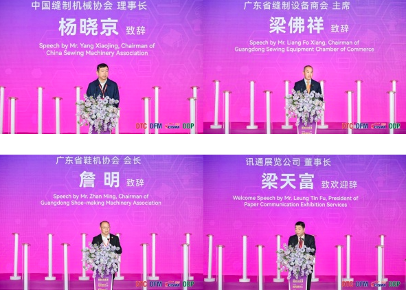 中國縫制機械協(xié)會理事長楊曉京、廣東省縫制設(shè)備商會主席梁佛祥、廣東省鞋機協(xié)會會長詹明、訊通展覽公司董事長梁天富等出席了開幕儀式。