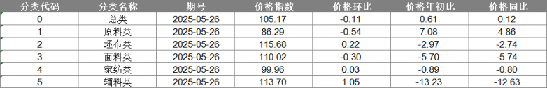 中國·柯橋紡織指數(shù)|20250526價格指數(shù)