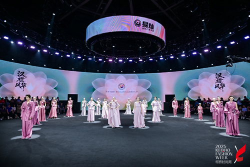 堅(jiān)守文化根脈,對(duì)話時(shí)代脈搏,引領(lǐng)國際風(fēng)潮,這是此次大秀傳遞的研發(fā)哲學(xué)。易燦紡織以創(chuàng)新性面料研發(fā)為筆,叢劍以非遺技藝為墨,共同在傳統(tǒng)服飾的“形”與“神”之間找到當(dāng)代注腳。這場大秀不僅是一次美學(xué)展示,更是對(duì)漢襟文化商業(yè)化路徑的探索。憑借科技化表達(dá)突破國際時(shí)尚之壁壘,讓悠悠千年的漢風(fēng),在經(jīng)緯的縱橫交織中,織就屬于這個(gè)時(shí)代的文化華裳。