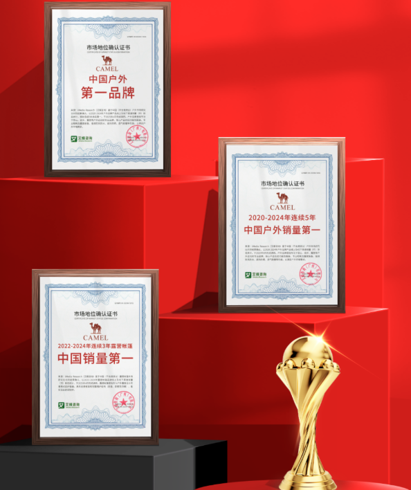 2025年4月,駱駝獲全球領(lǐng)先的新經(jīng)濟(jì)產(chǎn)業(yè)第三方數(shù)據(jù)挖掘和分析機(jī)構(gòu)iiMedia Research(艾媒咨詢)授予的“2020-2024年連續(xù)5年中國(guó)戶外銷量第一”“2022-2024年連續(xù)3年露營(yíng)帳篷中國(guó)銷量第一”“中國(guó)戶外第一品牌”三項(xiàng)市場(chǎng)地位確認(rèn)。