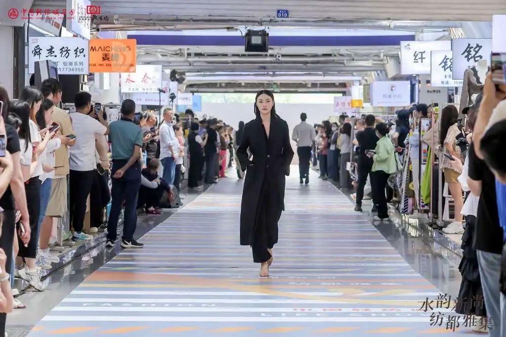 本次活動(dòng)以“水韻紡都”為魂,涵蓋面料雅集、國(guó)際設(shè)計(jì)師聯(lián)名秀、旗艦經(jīng)營(yíng)戶成衣發(fā)布、成衣靜態(tài)展及全天候?qū)由除埖榷嘣瘎?chuàng)新形式?;顒?dòng)現(xiàn)場(chǎng),法國(guó)設(shè)計(jì)師聯(lián)袂東市場(chǎng)商戶閃亮登場(chǎng),前沿時(shí)尚潮流涌動(dòng),水岸T臺(tái)縱穿整個(gè)東市場(chǎng)主通道,重構(gòu)紡織商貿(mào)新體驗(yàn),盡顯中國(guó)輕紡城東市場(chǎng)作為“中國(guó)時(shí)尚女裝面料第一站”的品牌影響力和時(shí)尚引領(lǐng)力。