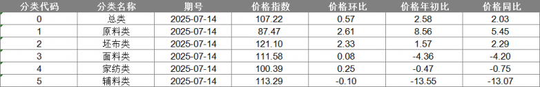中國(guó)·柯橋紡織指數(shù)|20250714期價(jià)格指數(shù)