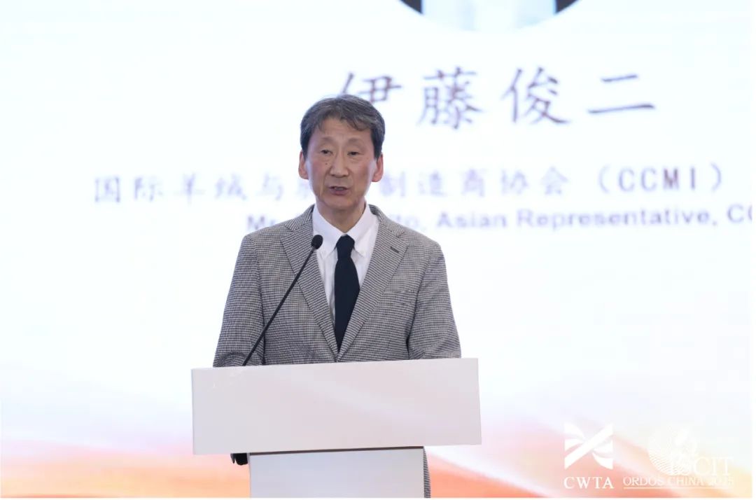 國際羊絨與駝絨制造商協(xié)會(CCMI)亞洲區(qū)代表伊藤俊二(Shawo Ito) 首先對中國羊絨產(chǎn)業(yè)的高質(zhì)量發(fā)展和中毛協(xié)所做的創(chuàng)新服務(wù)點(diǎn)贊。他表示,鄂爾多斯作為全球羊絨產(chǎn)業(yè)的中心,正在定義和引領(lǐng)著羊絨產(chǎn)業(yè)的發(fā)展和未來趨勢。當(dāng)前,國際貿(mào)易的不確定性給企業(yè)發(fā)展帶來了重大阻力,面對這些挑戰(zhàn),真正的行業(yè)領(lǐng)袖正脫穎而出,現(xiàn)在正是企業(yè)專注技術(shù)創(chuàng)新,提升產(chǎn)品品質(zhì),關(guān)注可持續(xù)發(fā)展,以危機(jī)轉(zhuǎn)換為商機(jī),引領(lǐng)未來的最好契機(jī)。他希望全球羊絨企業(yè)加強(qiáng)交流與合作,協(xié)同創(chuàng)新,共同構(gòu)建更具產(chǎn)業(yè)安全和發(fā)展韌性的產(chǎn)業(yè)鏈。