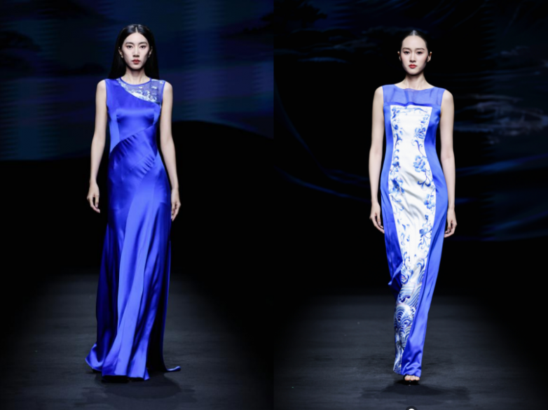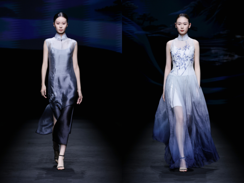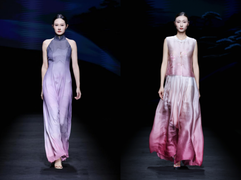 “華夏蘭繡” 系列循此雅韻而來,取傳統(tǒng)色 “遠(yuǎn)山黛” 摹山巒清寂、“海天霞” 繪云霞爛漫,將建蘭的疏影風(fēng)骨織入衣衫 —— 歐根紗的輕盈、柯根緞的挺括、喬其的柔糯與彈力緞的絲滑,在材質(zhì)碰撞間還原蘭花的靈動(dòng)姿態(tài)。更巧借建蘭與品牌主理人戚秋蘭之名的契合,讓服飾成為品格的載體,將 “空谷幽蘭” 的女性氣質(zhì)具象呈現(xiàn)。