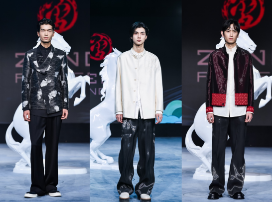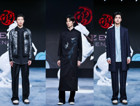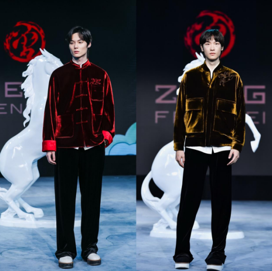 大秀開(kāi)場(chǎng),首套丙午系列高定男裝,由曾鳳飛品牌設(shè)計(jì)、定制,作品甄選桐昆絲絨面料,將丙午馬年元素與非遺割絨工藝相融,盡顯新中裝時(shí)代風(fēng)骨。同時(shí),特邀近幾季活躍在巴黎、米蘭國(guó)際時(shí)裝周的超模薛景倫開(kāi)場(chǎng)演繹。設(shè)計(jì)師與超模以各自的藝術(shù)語(yǔ)言,完成了對(duì)纖維面料的時(shí)尚表達(dá)。