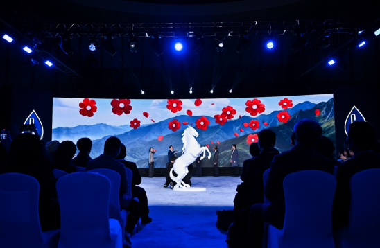 同期,“敘事中國(guó)美”纖維藝術(shù)展也在發(fā)布會(huì)序廳呈現(xiàn)。現(xiàn)場(chǎng)展出了歷屆大秀中十五套代表性作品,循時(shí)間之序,勾勒出東方美學(xué)由形到意、由技入韻的發(fā)展軌跡。在AI技術(shù)賦能下,一件件作品被置入具有中國(guó)文化意象的數(shù)字場(chǎng)景中,延展了纖維在傳統(tǒng)與未來(lái)之間的敘事空間。中國(guó)纖維已從單純的“原料”,演變?yōu)檫B接傳統(tǒng)與當(dāng)代、科技與藝術(shù)的“語(yǔ)言”,重構(gòu)了高性能與審美表達(dá)之間的平衡。