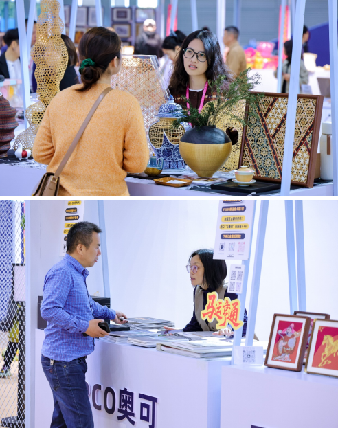 “萬(wàn)象奇市”創(chuàng)意市集另辟蹊徑,14家原創(chuàng)品牌將非遺竹編、天然水晶、潮玩IP融入軟裝,成為展會(huì)中最具煙火氣與創(chuàng)意感的打卡地。