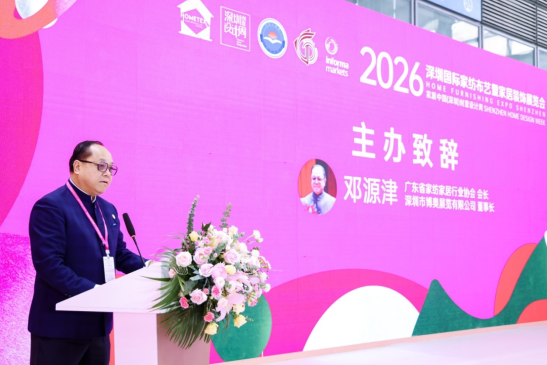 廣東省家紡家居行業(yè)協(xié)會(huì)會(huì)長(zhǎng)、深圳市博奧展覽有限公司董事長(zhǎng) 鄧源津以全球25萬(wàn)余公里的考察見(jiàn)聞為引,直言中國(guó)家紡仍是“充滿可能的新大陸”,而本次展會(huì)正是激活這片大陸的核心能量場(chǎng)。他強(qiáng)調(diào),展會(huì)的價(jià)值不止于商貿(mào)成交,更應(yīng)成為思想?yún)R聚、趨勢(shì)預(yù)見(jiàn)、全球資源鏈接的樞紐,并介紹了展會(huì)推出的全球渠道拓展、VIP星曜服務(wù)等創(chuàng)新舉措,傳遞出對(duì)行業(yè)未來(lái)的堅(jiān)定信心。